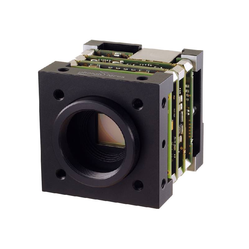 Board camera Photonfocus (serie photonCLASSIC) monocromatica, interfaccia GigE. Sensore Photonfocus A1024 CMOS Global Shutter da 1″, risoluzione 1024 x 1024 pixel (1 MP), dimensione del pixel 10,6μm, velocità 75 fps, attacco C o CS.