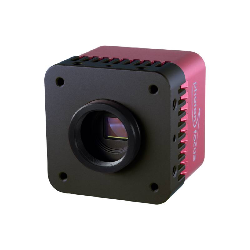Telecamera ad alta velocità Photonfocus (serie photonCLASSIC) monocromatica e NIR, interfaccia GigE. Sensore Photonfocus A1312, CMOS Global Shutter da 1″, risoluzione 1312 x 1082 pixel (1,4 MP), dimensione del pixel 8 μm, velocità 135 fps, attacco C.