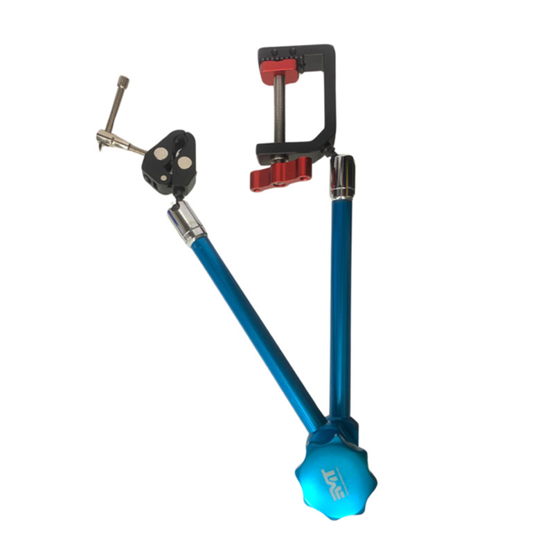 Braccio estensibile industriale TMS Lite progettato per il fissaggio e la regolazione di telecamere, illuminatori e sensori su linee di produzione e test da laboratorio. La struttura consente una rotazione continua di 360°, permettendo di orientare con precisione il dispositivo e mantenere la posizione in modo stabile. Soluzione compatta e robusta, ideale per applicazioni di visione artificiale, automazione e strumenti ottici.