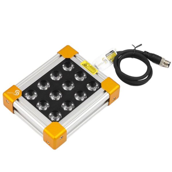 Illuminatore quadrato a luce diffusa Visionlux, illuminazione ad alta potenza, dimensioni 143 x 117 x 31 mm, alimentazione 24 v. Disponibile nelle varianti: rosso, blu, verde, bianco, IR 860, UV 365.
