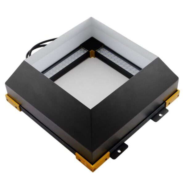 Illuminatore a cupola Visionlux. illuminazione quadrata diffusa, dimensioni esterne 2278 x 278; 195,7 x 195,7; 120,7 mm, alimentazione 24 v. Disponibile nelle varianti: rosso, blu, verde, bianco.