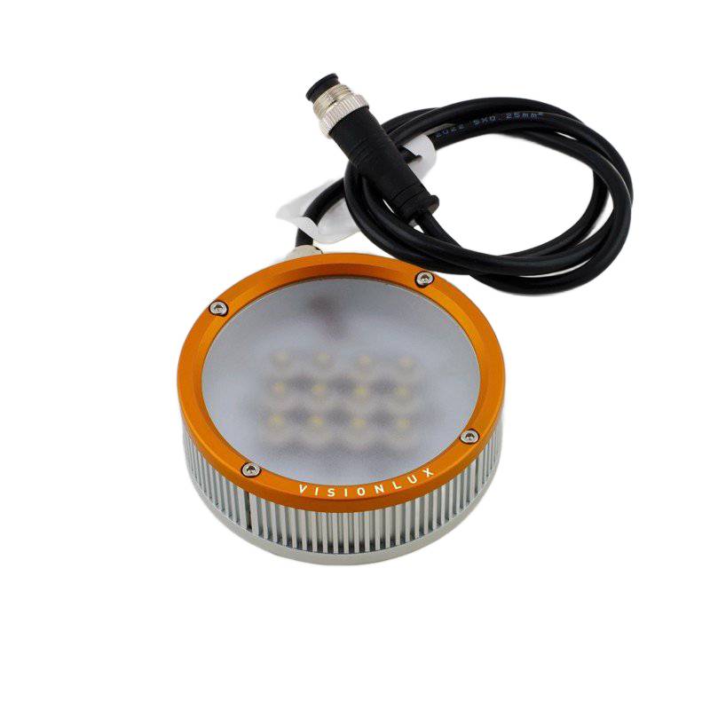 Illuminatore spot Visionlux, illuminazione ad alta potenza, diametro esterno Ø 81,4 mm, diametro interno Ø 73 mm, alimentazione 24 V. Disponibile nelle varianti: rosso, blu, verde, bianco, IR 860.