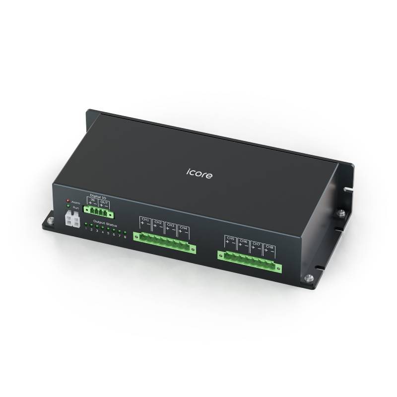 Controller iCore ad alta potenza per il controllo di illuminazione LED. Modalità strobo, 8 canale, supporta frequenze fino a 300 kHz e offre funzionalità di over-driving per una maggiore luminosità. Dispone di sequenze LED, regolazione automatica della tensione e supporta interfacce RS-485 e RS-232. Ideale per applicazioni di visione artificiale.