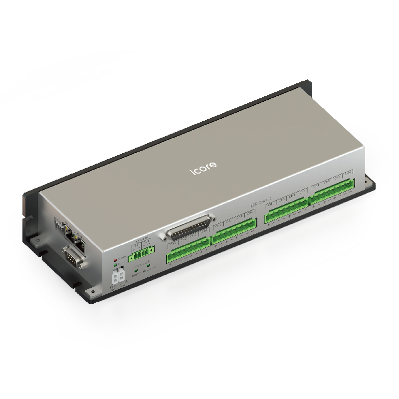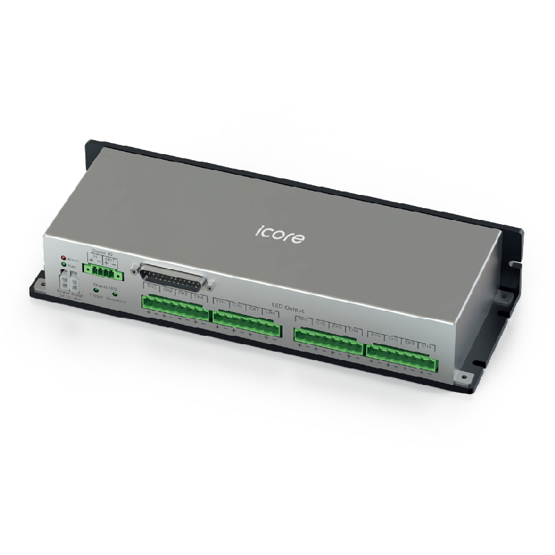Controller iCore ad alta potenza per il controllo di illuminazione LED. Dispositivo a 16 canali, modalità strobo, Supporta frequenze fino a 70 kHz e offre funzionalità di over-driving per una maggiore luminosità. Dispone di sequenze LED, regolazione automatica della tensione e supporta interfacce RS-485 e RS-232. Ideale per applicazioni di visione artificiale.