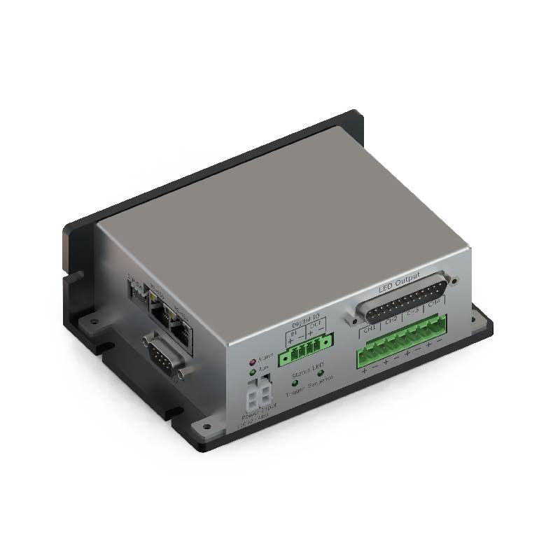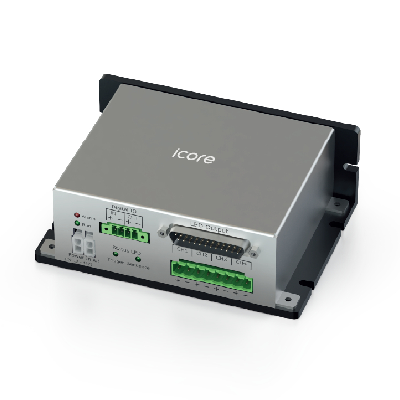 Controller iCore ad alta potenza per il controllo di illuminazione LED. Dispositivo a 4 canali, modalità strobo, Supporta frequenze fino a 70 kHz e offre funzionalità di over-driving per una maggiore luminosità. Dispone di sequenze LED, regolazione automatica della tensione e supporta interfacce RS-485 e RS-232. Ideale per applicazioni di visione artificiale.