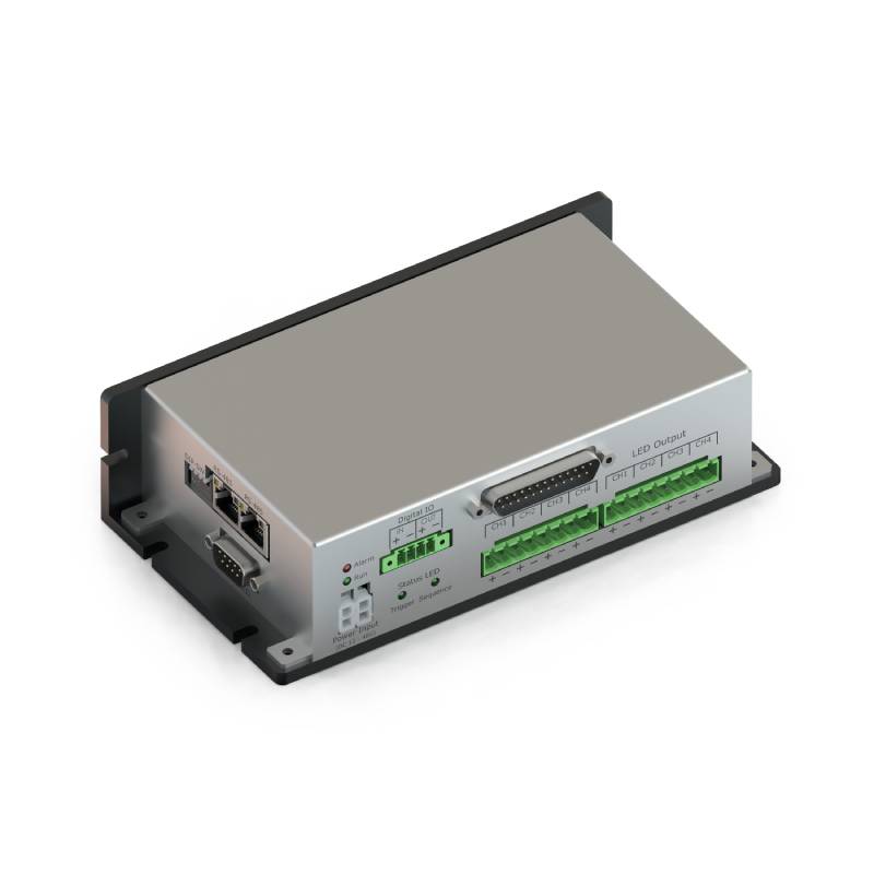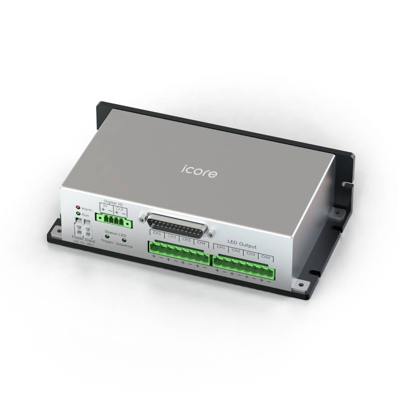 Controller iCore ad alta potenza per il controllo di illuminazione LED. Dispositivo a 8 canali, modalità strobo, Supporta frequenze fino a 70 kHz e offre funzionalità di over-driving per una maggiore luminosità. Dispone di sequenze LED, regolazione automatica della tensione e supporta interfacce RS-485 e RS-232. Ideale per applicazioni di visione artificiale.