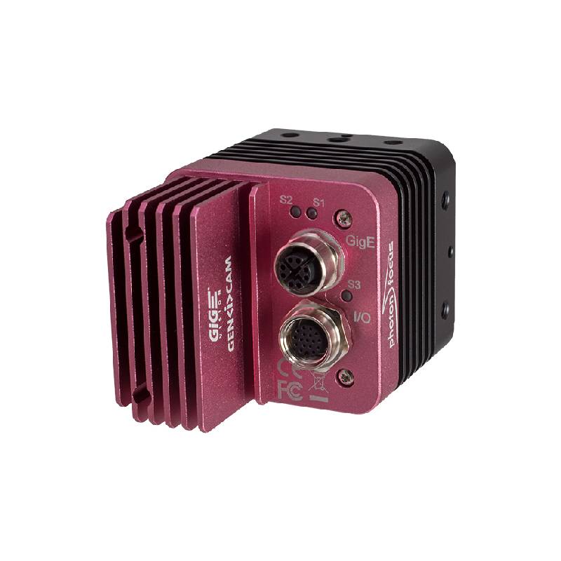 Telecamera 3D Photonfocus (serie photon3D) per triangolazione laser, interfaccia digitale GigE, sensore CMOS Global Shutter monocromatico LUXIMA LUX2810 da 1″, risoluzione 2048 x 1400 pixel, 2,8 MP, dimensione del pixel 6,6 μm, frame rate 27000 pps, attacco C-mount.
