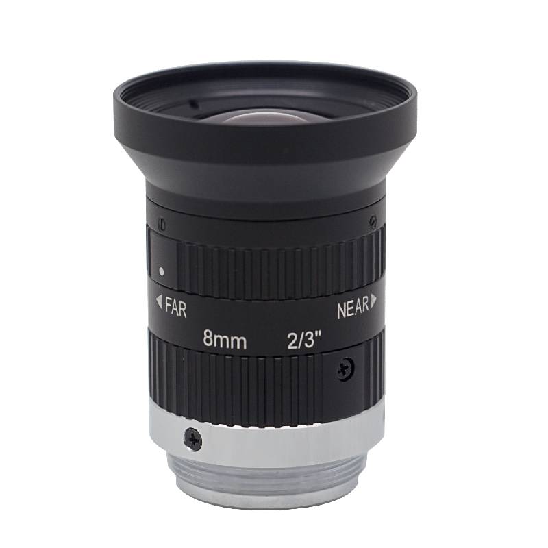 Obiettivo industriale Hikrobot da 8 mm per sistemi di visione area scan, compatibile con sensori fino a 2/3″ (Φ11 mm). Design ottico a bassa distorsione e elevata uniformità di illuminazione, ideale per telecamere a colori o monocromatiche. Iris e fuoco manuali, attacco C-mount.